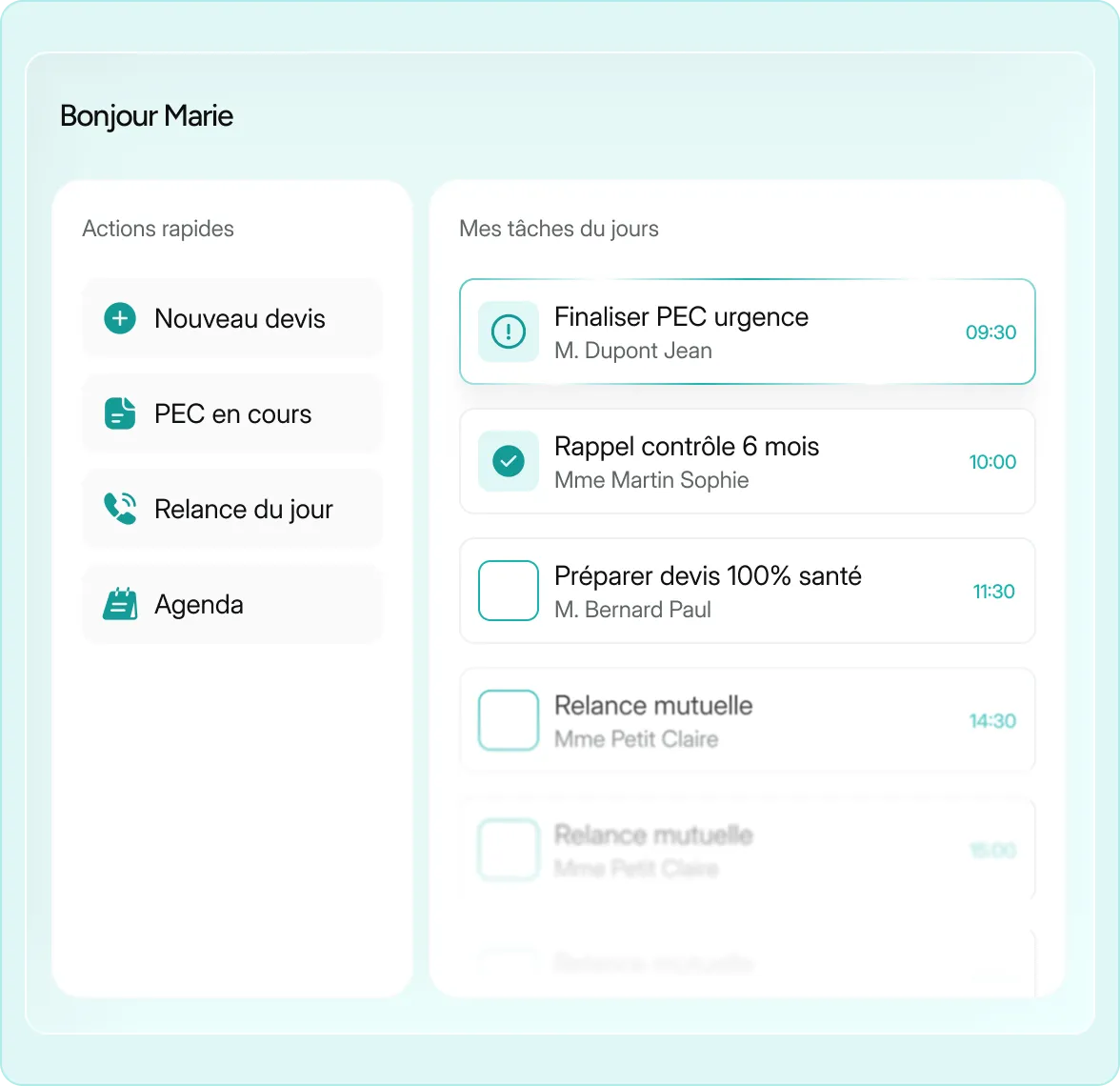 - Des workflows métier optimisés : passage fiche patient → facturation en un clic, récupération automatique de l'ordonnance