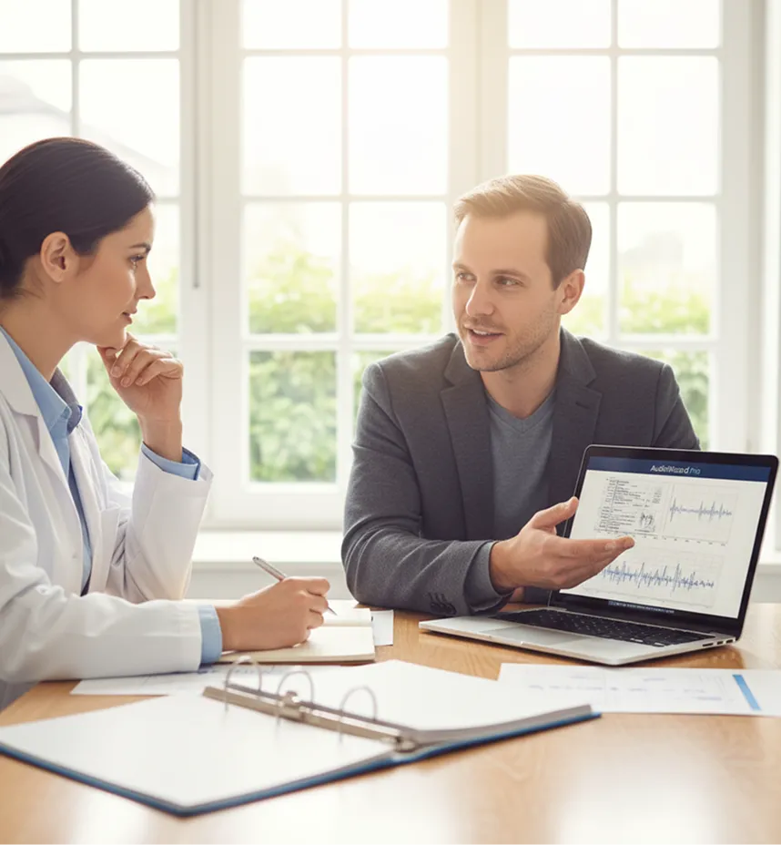 Accompagnement expert par des audioprothésistes : paramétrage complet, documents légaux fournis, formation progressive et suivi terrain. Votre premier patient reçu sereinement, sans stress administratif ni perte de temps.