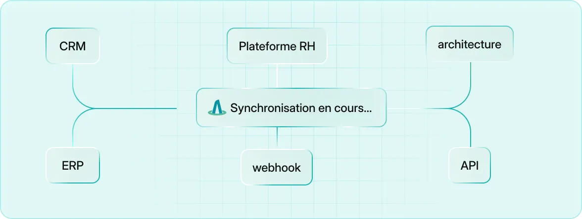 API publique pour interconnexion avec votre CRM, ERP, logiciel paie ou plateforme RH. Synchronisation automatique des données, webhooks personnalisés, intégration dans votre architecture existante. Votre système d'information unifié.
